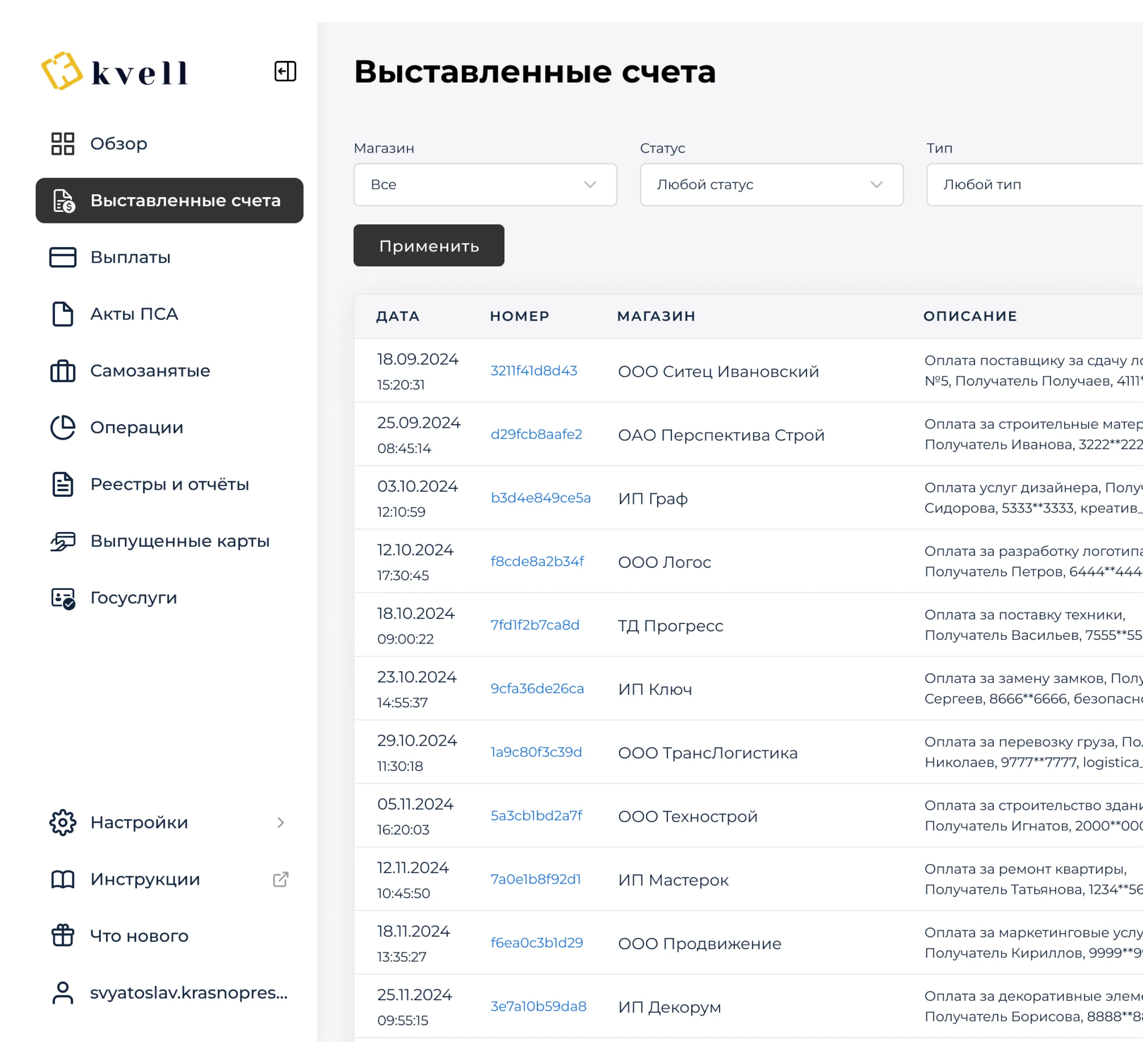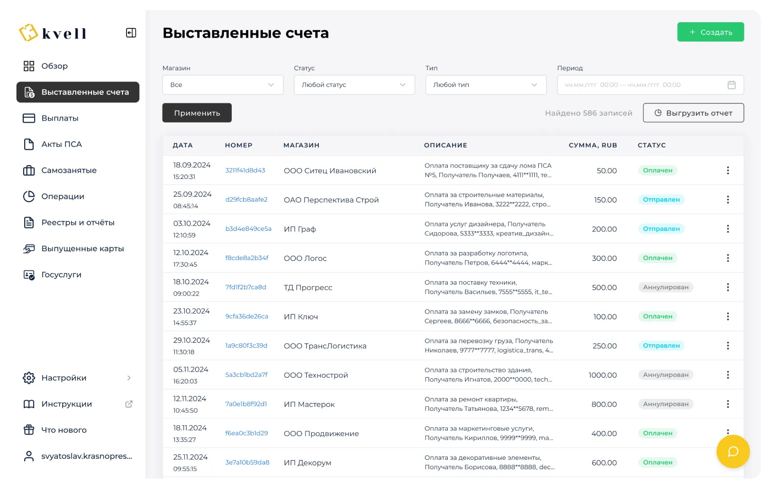 Удобный инструмент для выставления счётов и управления ими.