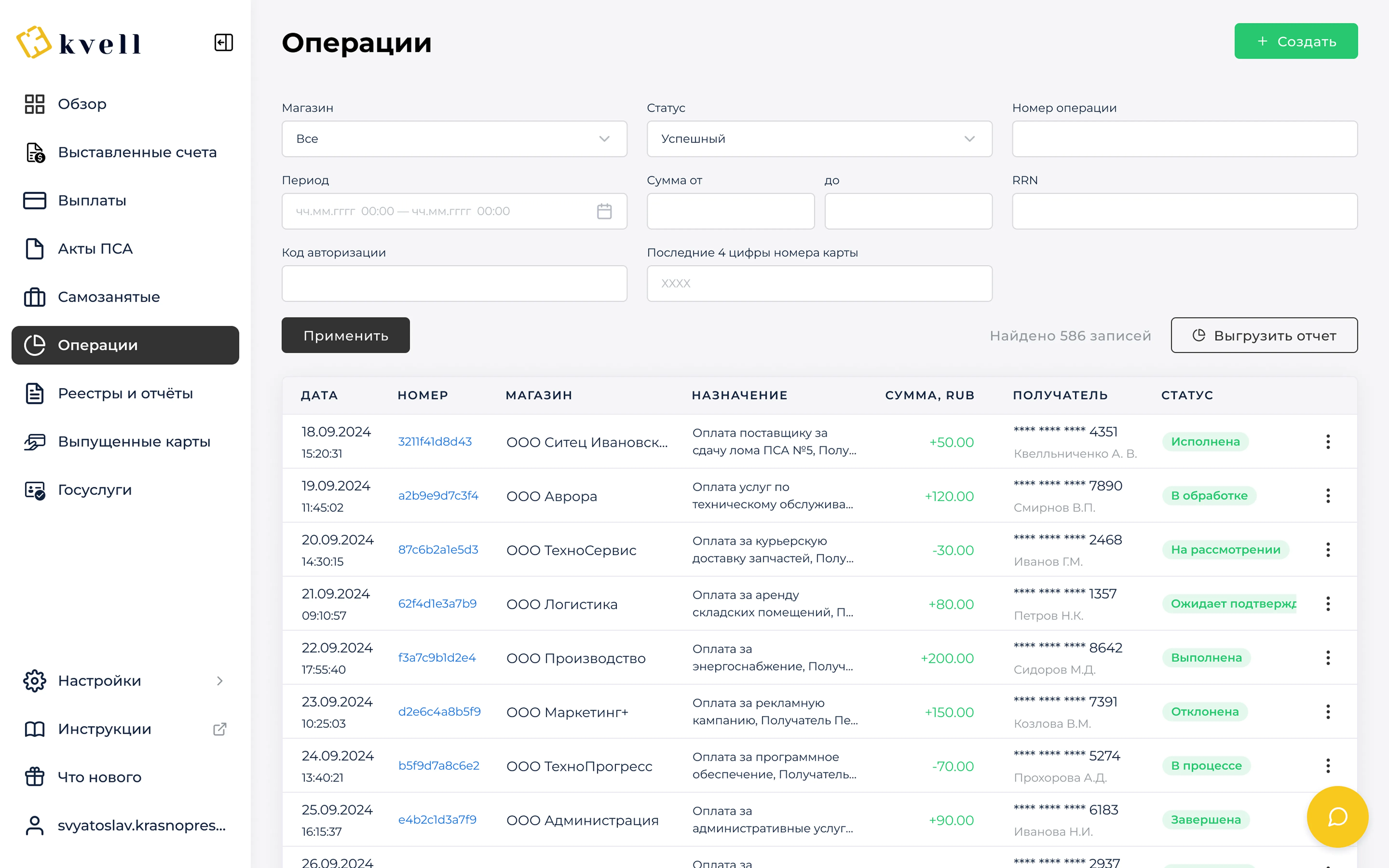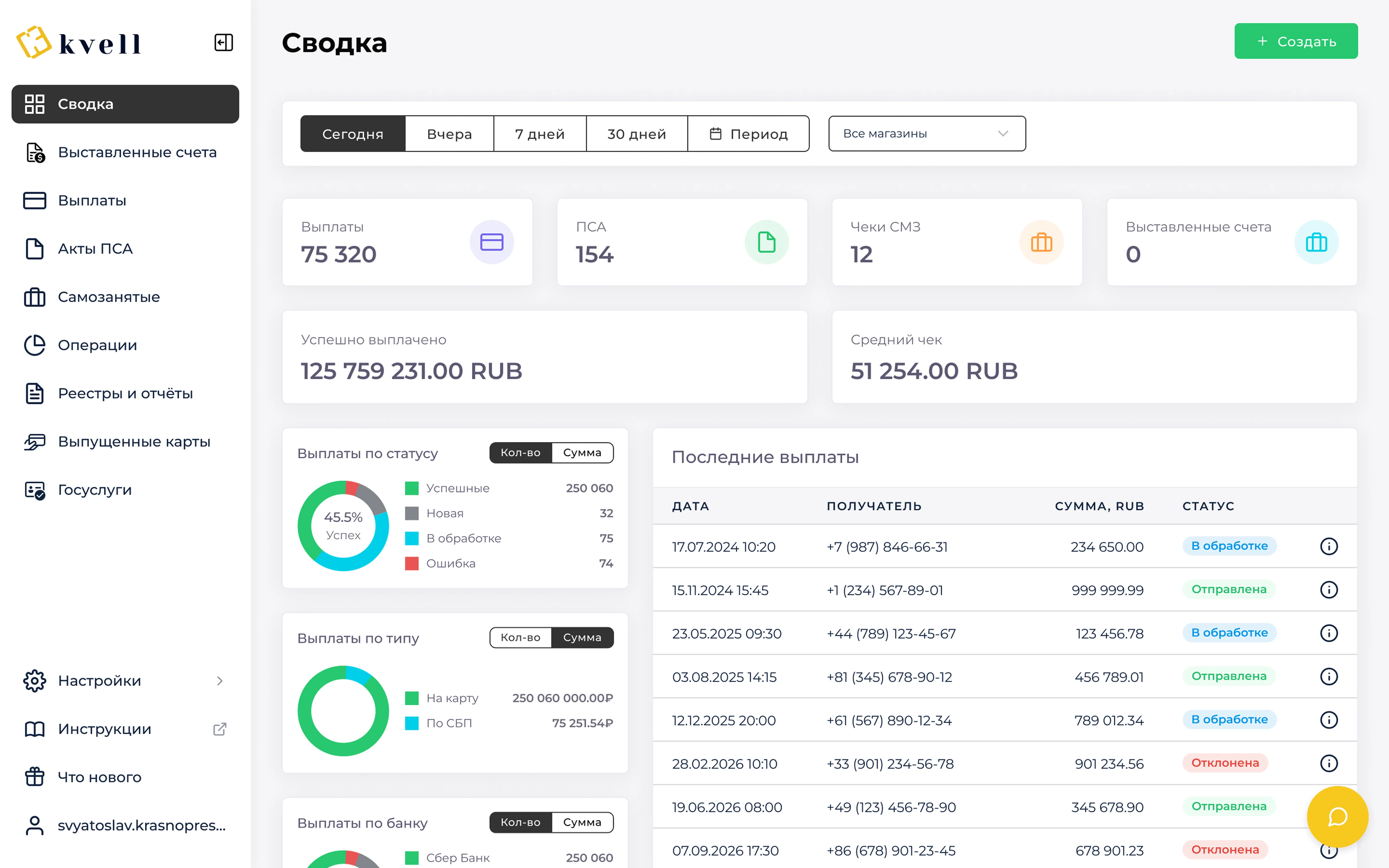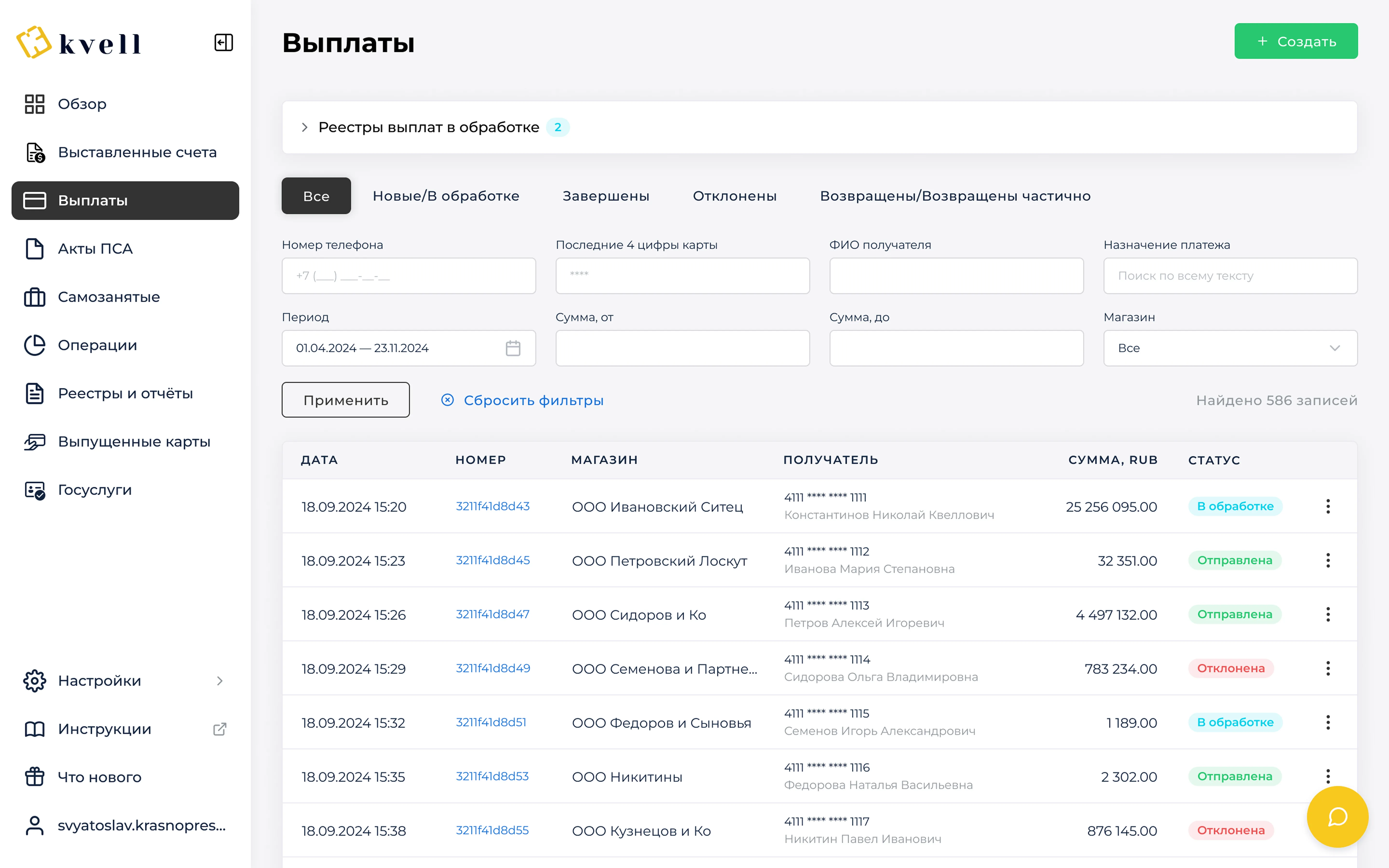 выплаты и создавайте массовые для мгновенных переводов контрагентам